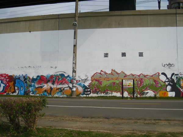 (4)新店溪右岸單車道旁規劃了塗鴉區,