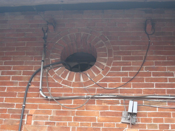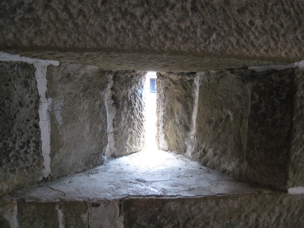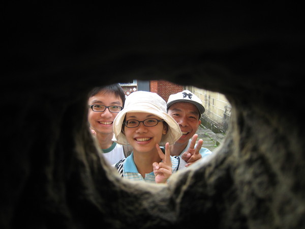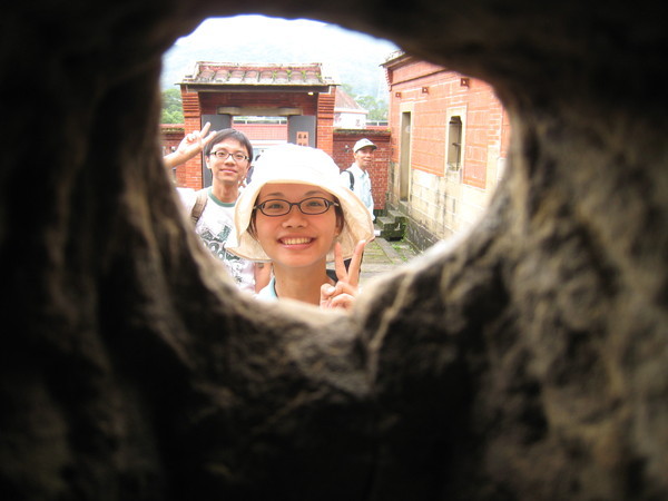 來到古厝,我倒覺得銃眼可以好好玩它一下,調皮的要