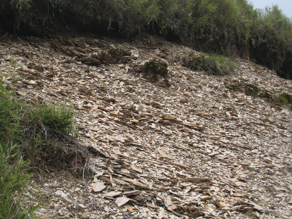 因溫差特大導致風化嚴重而散落一地的頁岩。