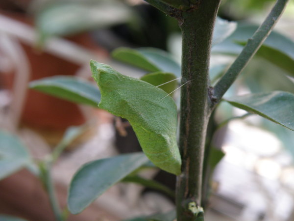 《小桔子樹上無尾鳳蝶幼蟲前蛹期》