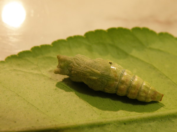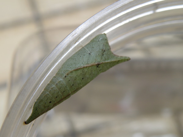 《小桔子樹上無尾鳳蝶幼蟲蛹期~側面》