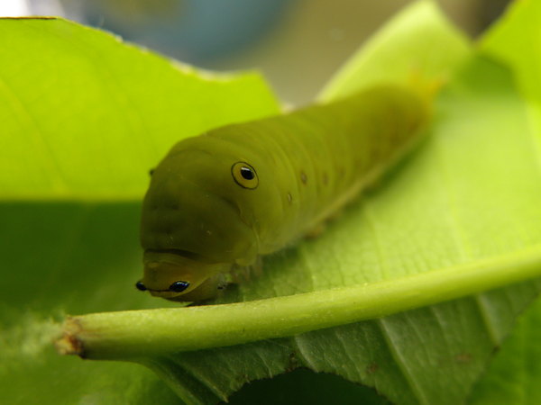 《玉蘭花上青斑鳳蝶終齡幼蟲~~好大眼睛~~那是假眼》