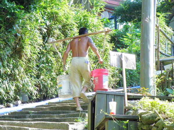 今日恰巧有居民挑著貨物上山,趕緊喀嚓一聲好做一個見證。
