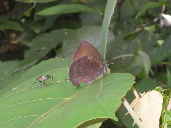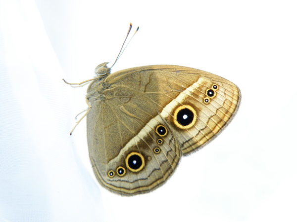鳳眼方環蝶,它的腹面暗褐色,下翅前緣具有一枚眼紋。