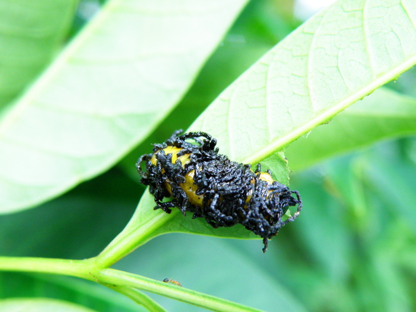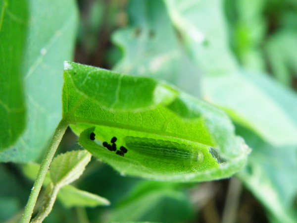 《山漆葉子上大黃金花蟲幼蟲~~糞便黏附身上》
