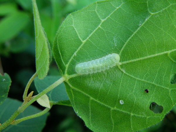 《扛香藤上凹翅紫小灰蝶幼蟲》