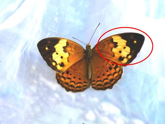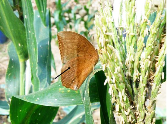 《鳳眼方環蝶~~看見沒?箭頭所指下翅前緣具有一枚眼紋 》