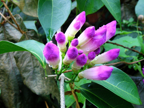 紫薇科的蒜香藤,搓揉葉片,蒜味無比濃郁,此時正是花季,