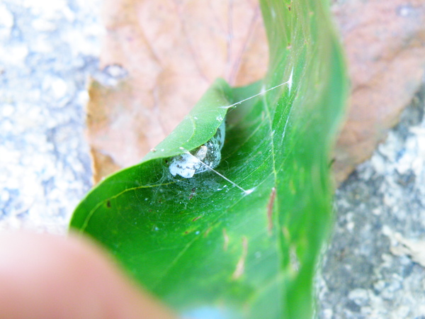 蝴蝶公主用望遠鏡看到在一片嫩葉上有一堆蝶卵,我們紛紛