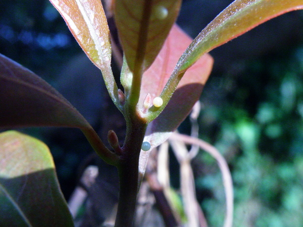 處處可見青帶鳳蝶小巧、光滑的卵粒,新生命準備