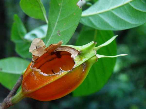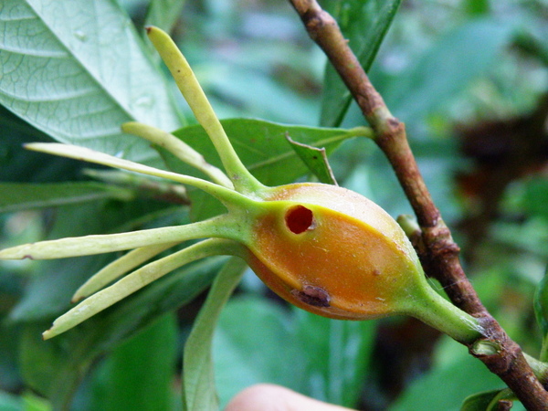 長相像古時酒器的山黃梔果實,其上有多條縱稜,