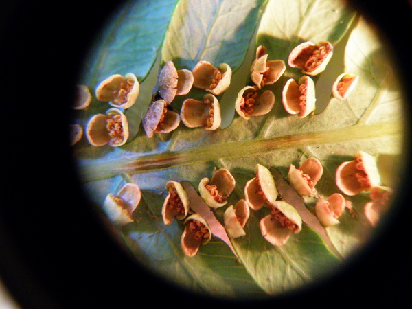 《放大鏡底下東方狗脊蕨孢子囊群》