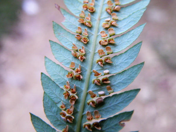 孢子囊群長在小羽片基部兩側,孢膜開裂形似蚌殼,