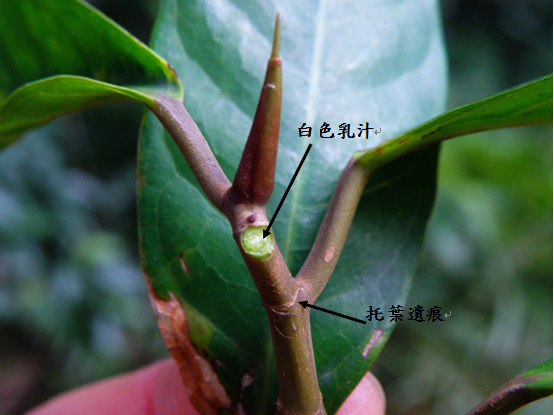九丁榕葉面閉鎖脈明顯、托葉遺痕清晰可見,