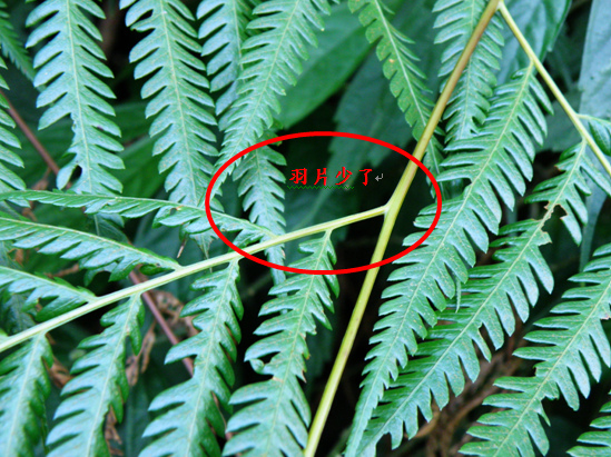 一側會缺少一些小羽片是辨識重點,今日在放大鏡底下