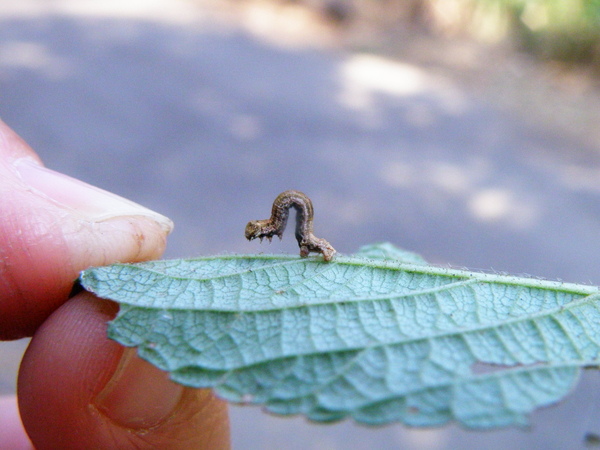 葉片上的尺蠖吸引我的目光許久許久,它有三對胸足但只有