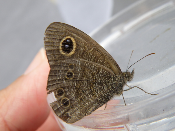 有6個眼紋,今天網到的是它的冬溫型,下翅不見眼紋,很特別,