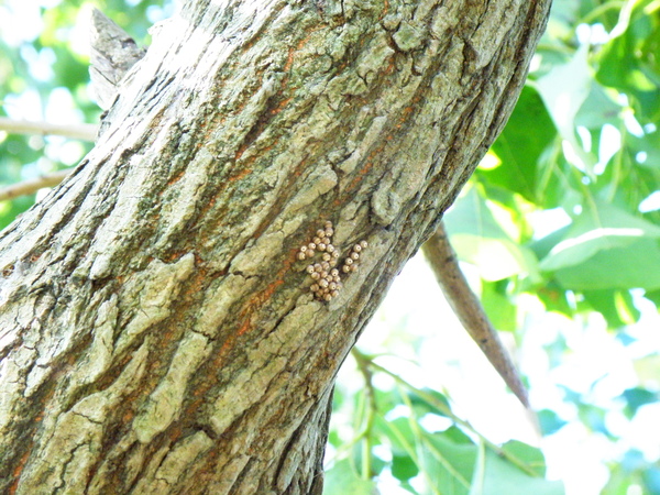 有一堆蟲卵,那是烏桕的蟲卵嗎?趨前拍照,仔細一瞧!它應該