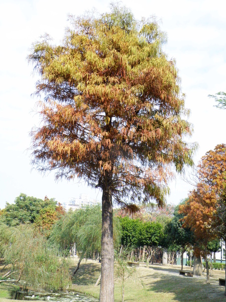 台南巴克禮公園夢湖旁杉科植物~落羽松環繞,羽落滿地,