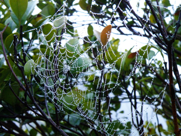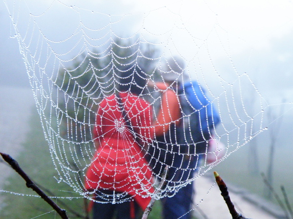 蜘蛛網出現少見的晶瑩剔透效果,大自然毫不做作的大筆一揮