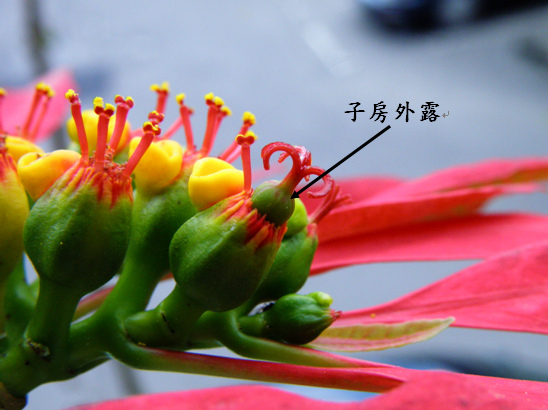 經由昆蟲們的媒介,一旦雌蕊授粉成功,子房膨大外露,