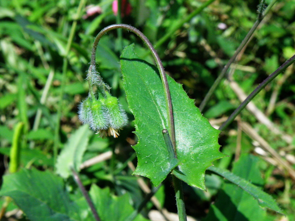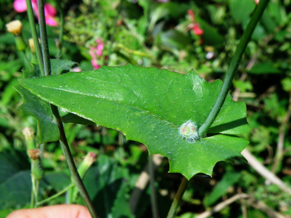 邊緣具明顯鋸齒、基部耳狀抱莖、頭狀花序頂生,具長梗,