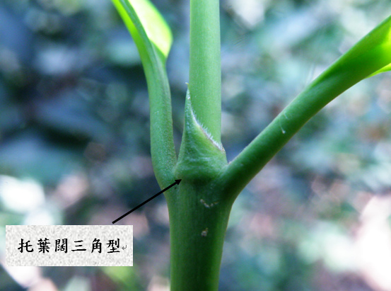 《山豬肝葉柄粗大,稍具扭轉的特質》