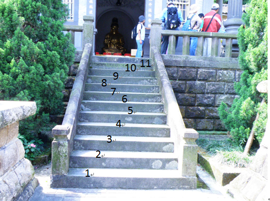 步上正殿之台階通常取用奇數〈奇數屬陽〉,大夥一起邊走