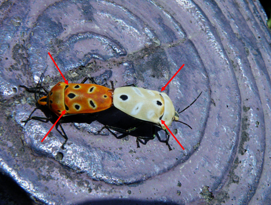 《黃盾背椿象交尾~男左女右、前胸背板下緣與