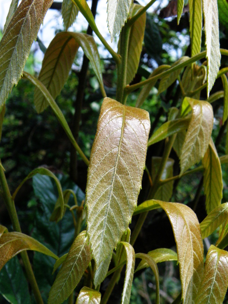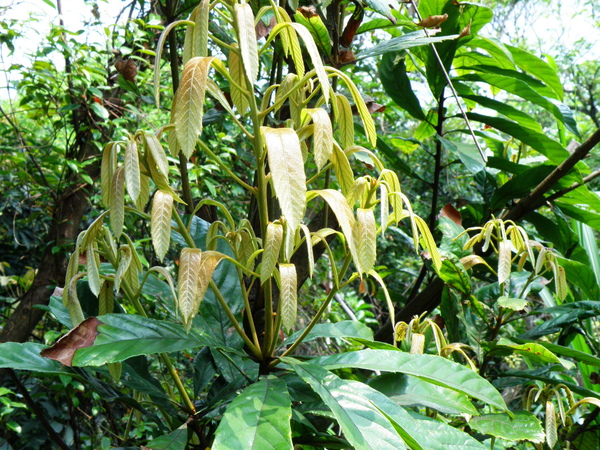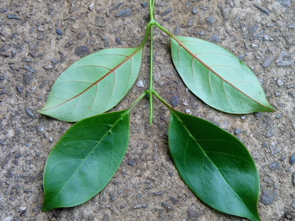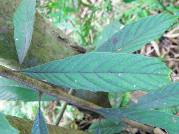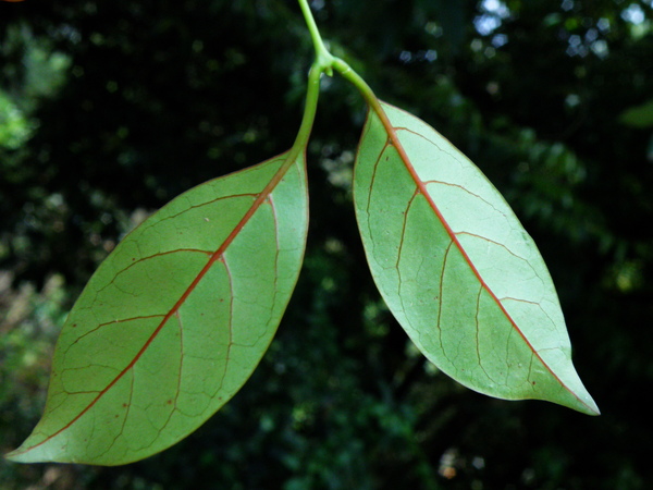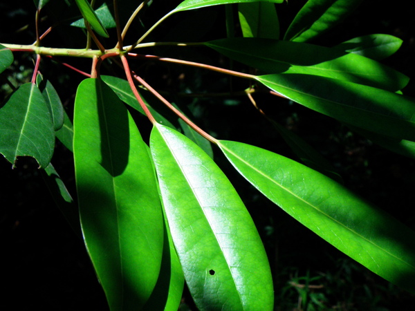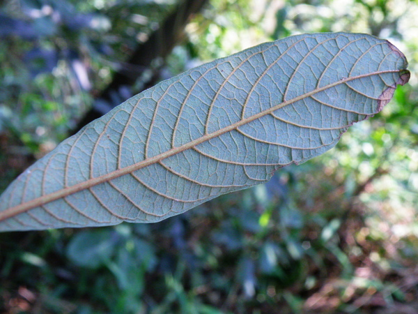 筆直高大的清風藤科比羅子,葉子正面葉脈稍帶紫色、葉背則