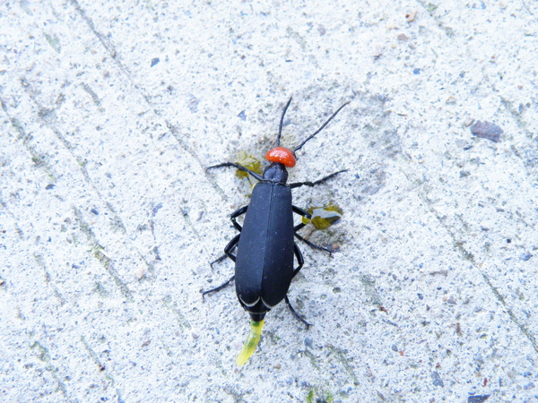 豆芫菁~屬於芫菁科,體色黑色、又圓又大紅咚咚的頭很醒目、