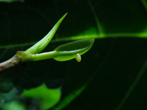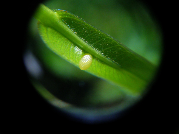 其「砲彈外型黃金玉米粒般」的蝶卵在放大鏡底下一瞧