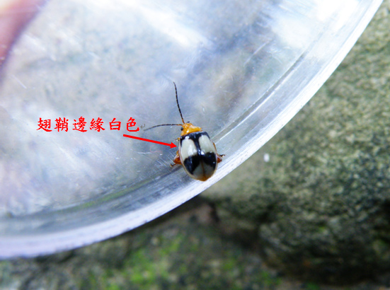 白緣溝腳葉蚤~金花蟲科,翅緣周邊白色,這一點是它和