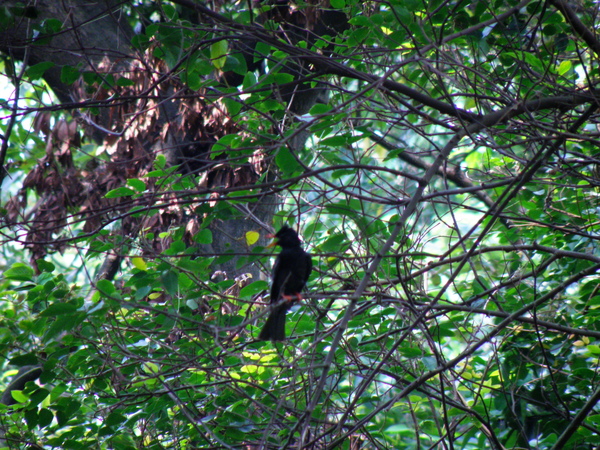 這應該是公的紅嘴黑鵯對女朋友的聲聲呼喚吧!抬頭一望,