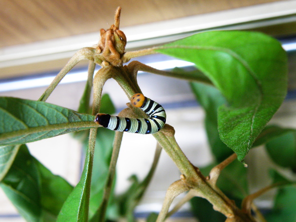 我帶了隻幼蟲回家觀察,它有築蟲巢的習慣,平時外出吃飯,