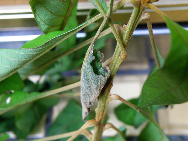 1. 葉子正面主脈上有一顆顆小疙瘩。