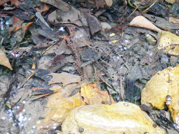 蛙蛙又出現了,這一次是泡在小溪裡的是古氏赤蛙,背後有W型
