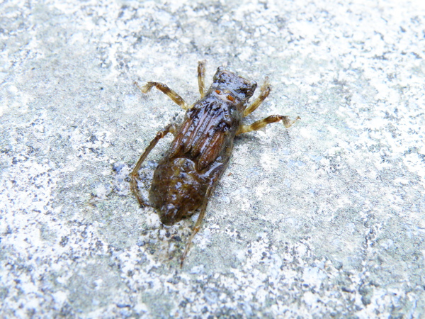 飛速請它入鏡,翅鞘褐色,具不明顯的縱向溝紋,前胸背板
