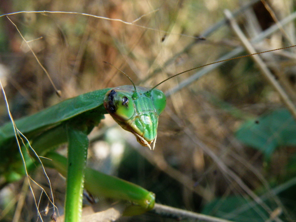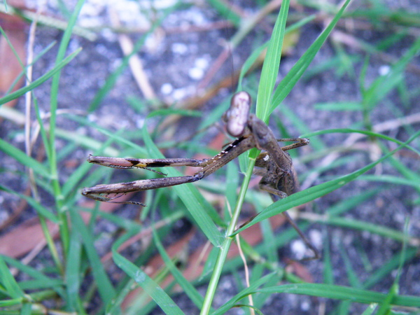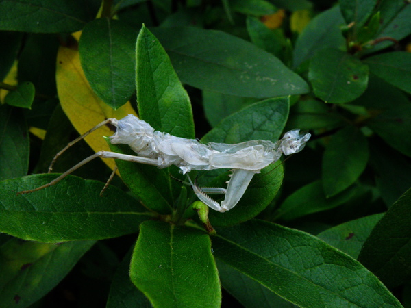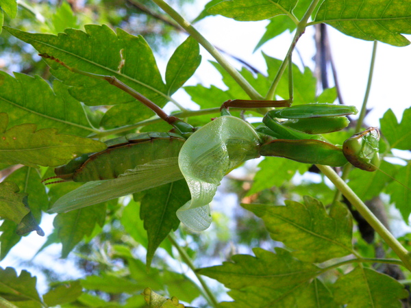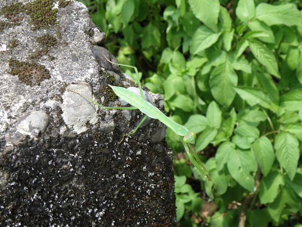 據說二叭子植物園名氣很響亮,我卻一直沒去過, 那就更該去嚐鮮嚐鮮囉! 集合時間未到,我們五位同〈車〉之人習慣性 的就先東看看、西找找,香香公主眼力最好,總能 第一時間發現奇珍異獸,其餘之閒人也就有福了。 跑野外只要遇見螳螂,我一向「拍~無赦」,很喜歡 請它入鏡原因無它,就是它那帶點誇張的姿態讓 我有很多的聯想,跳水預備備、螳螂拳出招、 鐮刀式殺手、和平祈禱者,甚至蛻下薄紗為哪樁? 總覺得畫面頂有想像空間的!