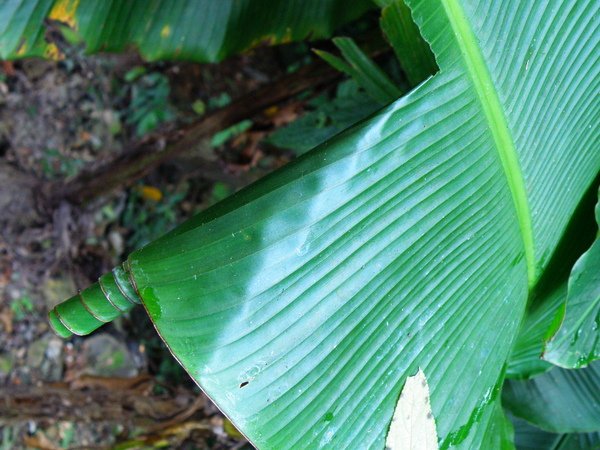碩大的草本植物~香蕉,葉片被整齊的捲起,小心撥開觀察,