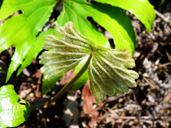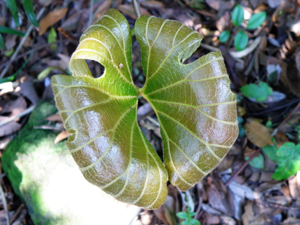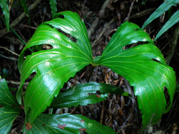 沿著自然小徑緩上,假福王草造型特殊的葉片立即有向它