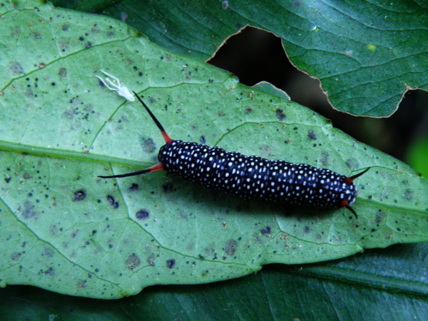 《琉球青斑蝶的寶寶~觸角基部紅色,表示它已屆終齡》
