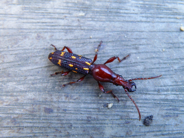 公的黃紋三錐象鼻蟲~ 頭、胸、各腳為棗紅色,觸角