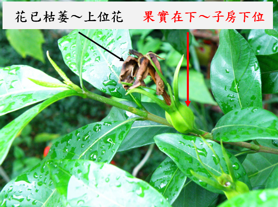 一旁山黃梔枯萎的花朵不忍離去,正巧讓我們再複習一遍,