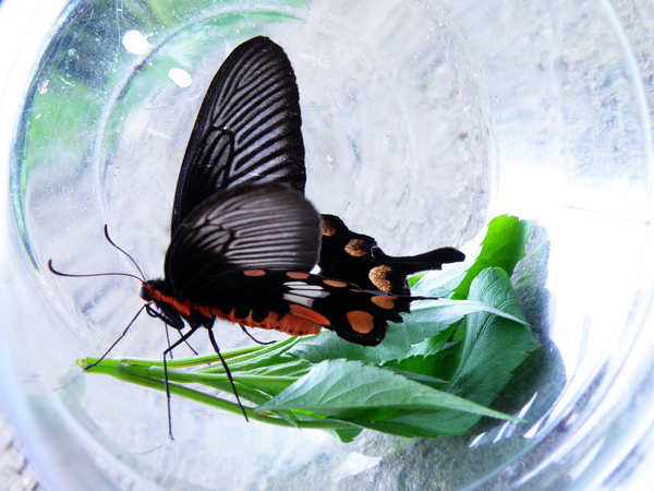 8月份蝴蝶研調,帶回以三腳鱉為食的大琉璃紋鳳蝶幼蟲一隻,