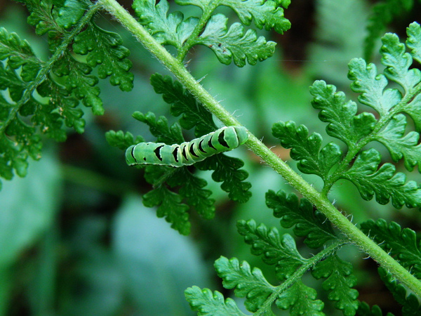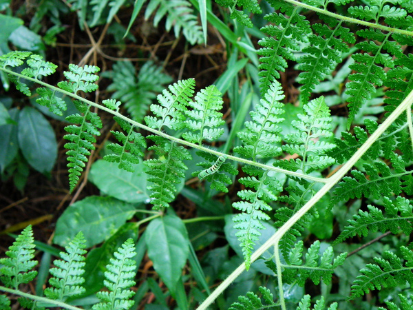蕨葉上一隻擬態高手的蛾寶寶,竟也被夥伴給發現,不過還是