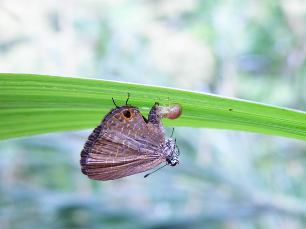 <琉璃波紋小灰蝶被蜘蛛纏住,結局呢?>
