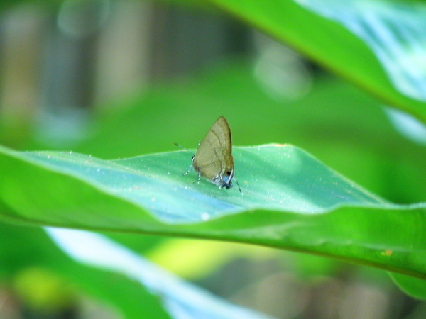 稍遠處葉面上的小灰蝶是誰啊?用最大望遠鏡頭拉它入鏡,外加