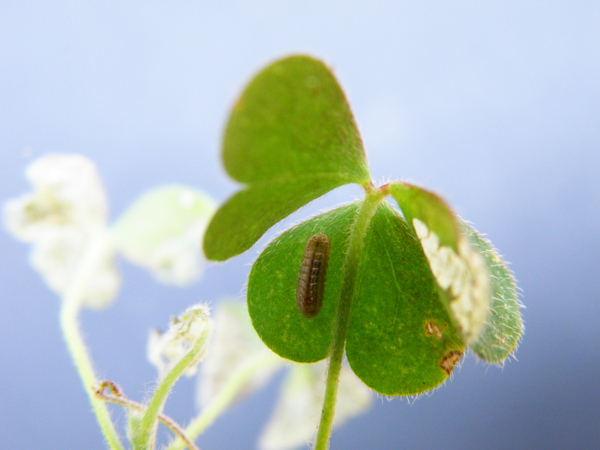 <黃花酢漿草vs.沖繩小灰蝶~比一片葉子還小~幼蟲第三日>