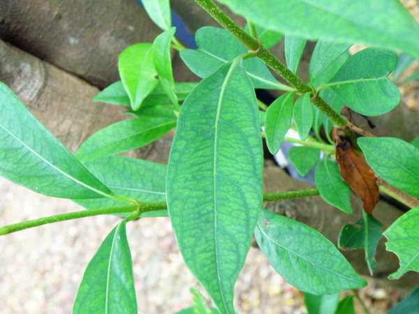 福木的影子,幼葉有白色絨毛,葉子背面紋路清晰,據說有如
